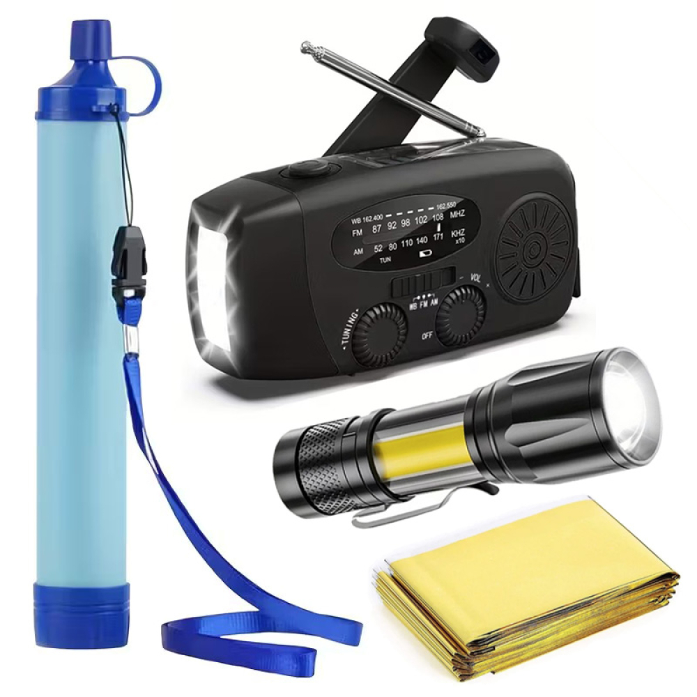 De noodradio is een alles-in-één draagbare radio met meerdere praktische functies. Naast radio kun je hem gebruiken als zaklamp én powerbank. De radio is op drie manieren op te laden: via zonne-energie, door opwinden of met de meegeleverde USB-C kabel.