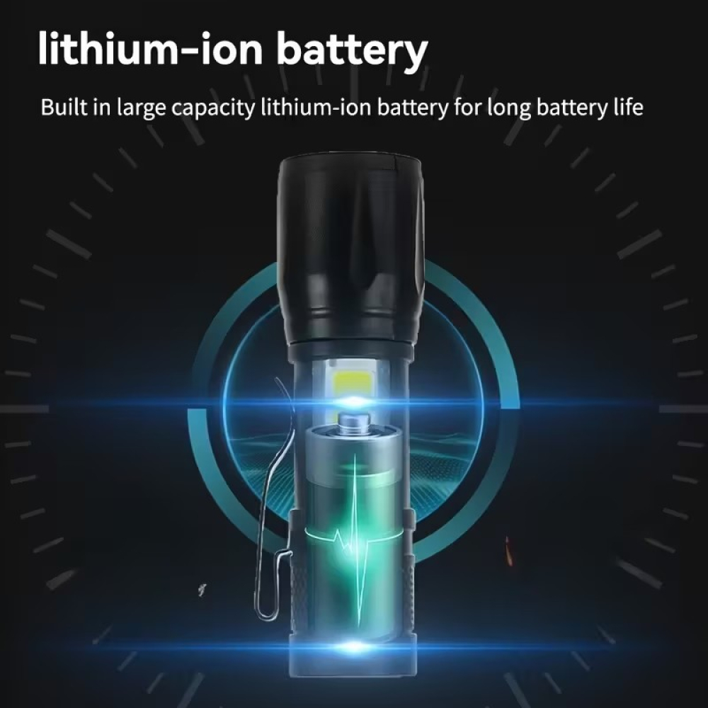De veelzijdige LED zaklamp is ontworpen voor krachtig en betrouwbaar licht in elke situatie. Dankzij de ingebouwde lithium-ion batterij geniet je van een lange gebruiksduur en hoef je geen losse batterijen te vervangen. Ideaal voor thuisgebruik, outdoor activiteiten, werk, kamperen of noodsituaties.